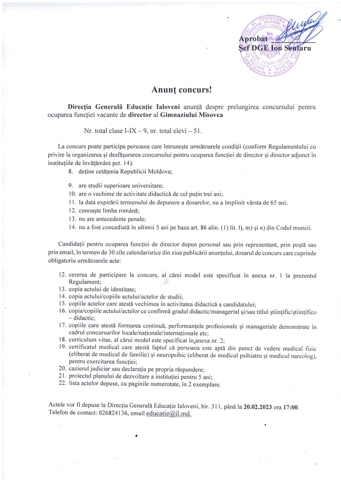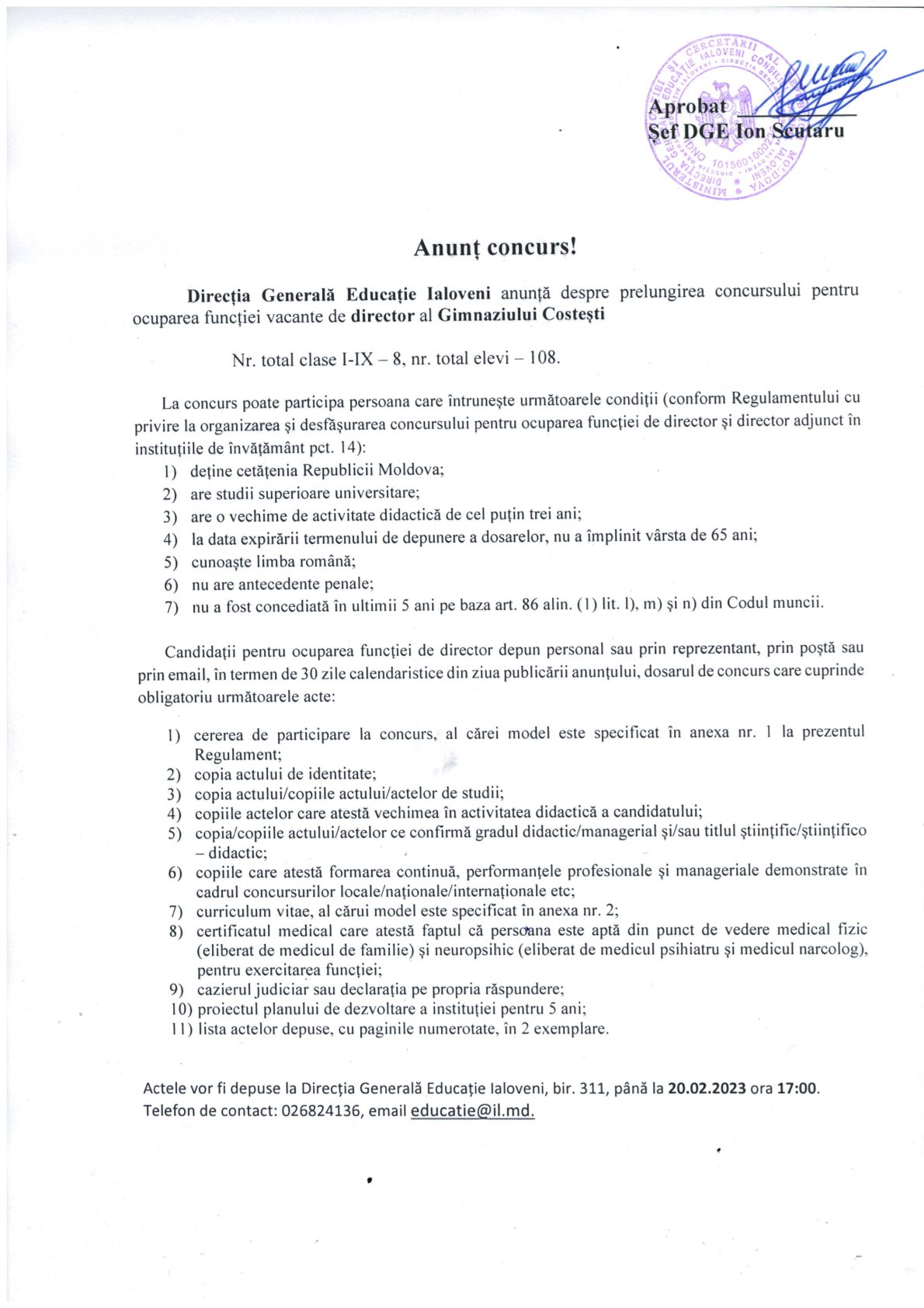 Direcția Generală Educație informează că procesul de înscriere a copiilor în clasa I pentru anul de […]