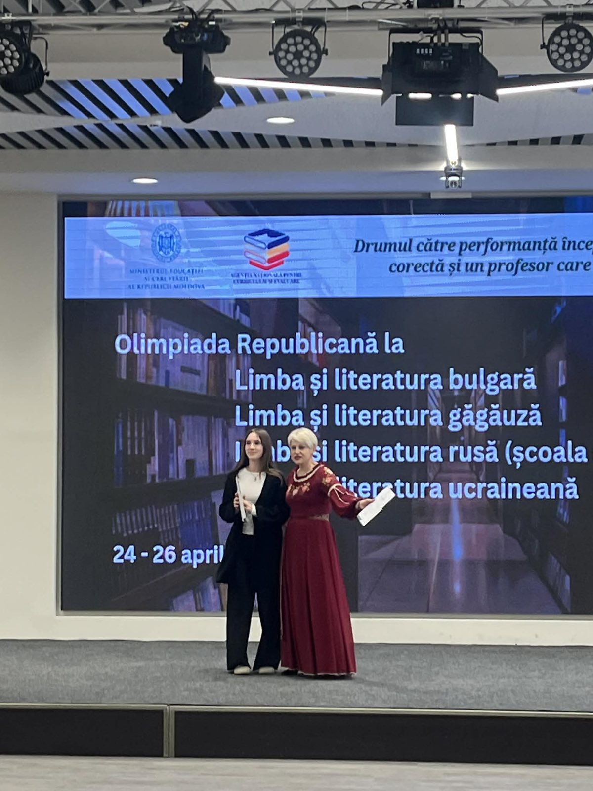 Direcția Generală Educație Ialoveni adresează sincere felicitări elevei Stavinschi Taisia, elevă în clasa a IX-a la Instituția Publică Liceul Teoretic „Andrei Vartic”, pentru obținerea mențiunii la Olimpiada Republicană la limba rusă.