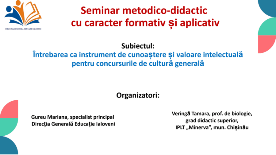 Evenimentul a avut drept scop dezvoltarea competențelor metodico-didactice de elaborare a întrebărilor complexe, menite să stimuleze gândirea critică, curiozitatea intelectuală și învățarea activă a elevilor în cadrul concursurilor de cultură generală.